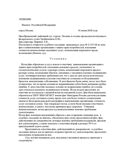 В процессе ортодонтического лечения потребителя были допущены грубые ошибки: установленная брекет-система положительного результата в виде нормализации прикуса не дала, клиентке без специальных показаний к этому были удалены некоторые зубы.